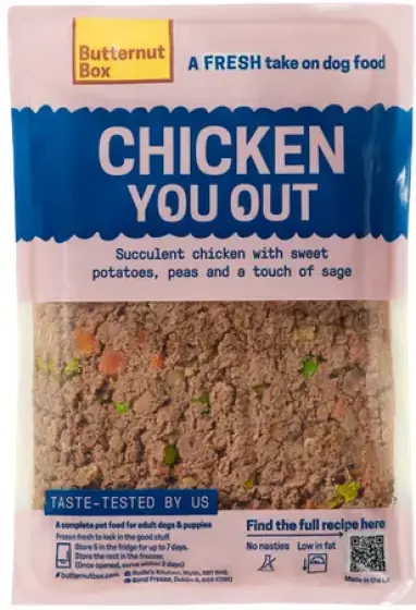 When you sign up, Butternut Box asks what your dog is allergic to and automatically excludes those ingredients across all meals. Single-protein recipes are available, and the manufacturing process prevents cross-contamination between protein lines. The food is human-grade, gently cooked at 90 degrees C, and frozen. For dogs with multiple or severe allergies, this level of control is genuinely valuable. The trade-off is cost: expect upwards of £3.40/day for a small dog, considerably more for larger breeds.