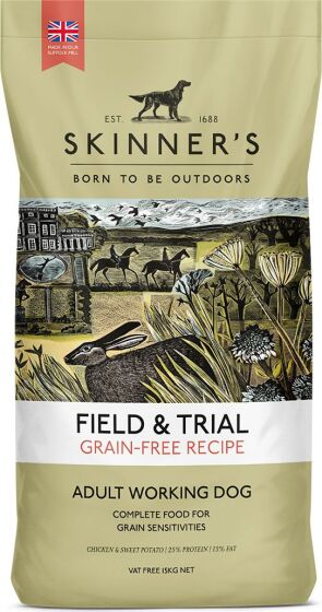 Best on a budget:Skinner's Field & Trial Grain Free Salmon - around £0.75/day. Uses sunflower oil instead of poultry fat. Under half the price of premium alternatives.